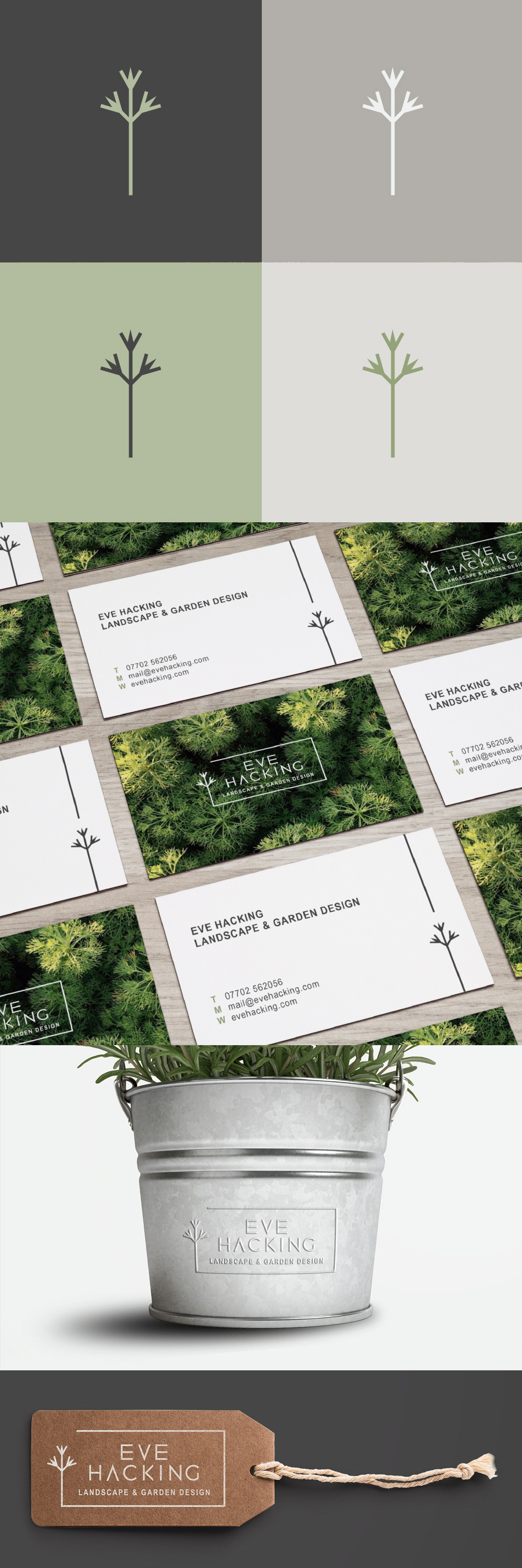 A full brand identity for Eve Hacking - including logo design, secondary marks, colour palette, typography, social media and stationery assets.